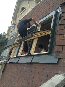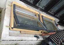 手动铝木复合中悬及铝合金上悬天窗施工现场图:
